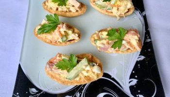 Сочный салат с копченым сыром в быстрых тарталетках (для тарталеток никакого теста не надо)