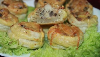 Волованы из слоеного теста с грибами, куриным филе и сливочным соусом