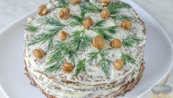 Печеночный торт с грибами и сыром