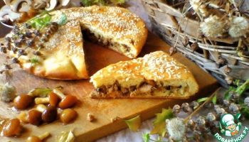 Пирог с курицей и грибами на заливном тесте – сытный ужин для всей семьи.